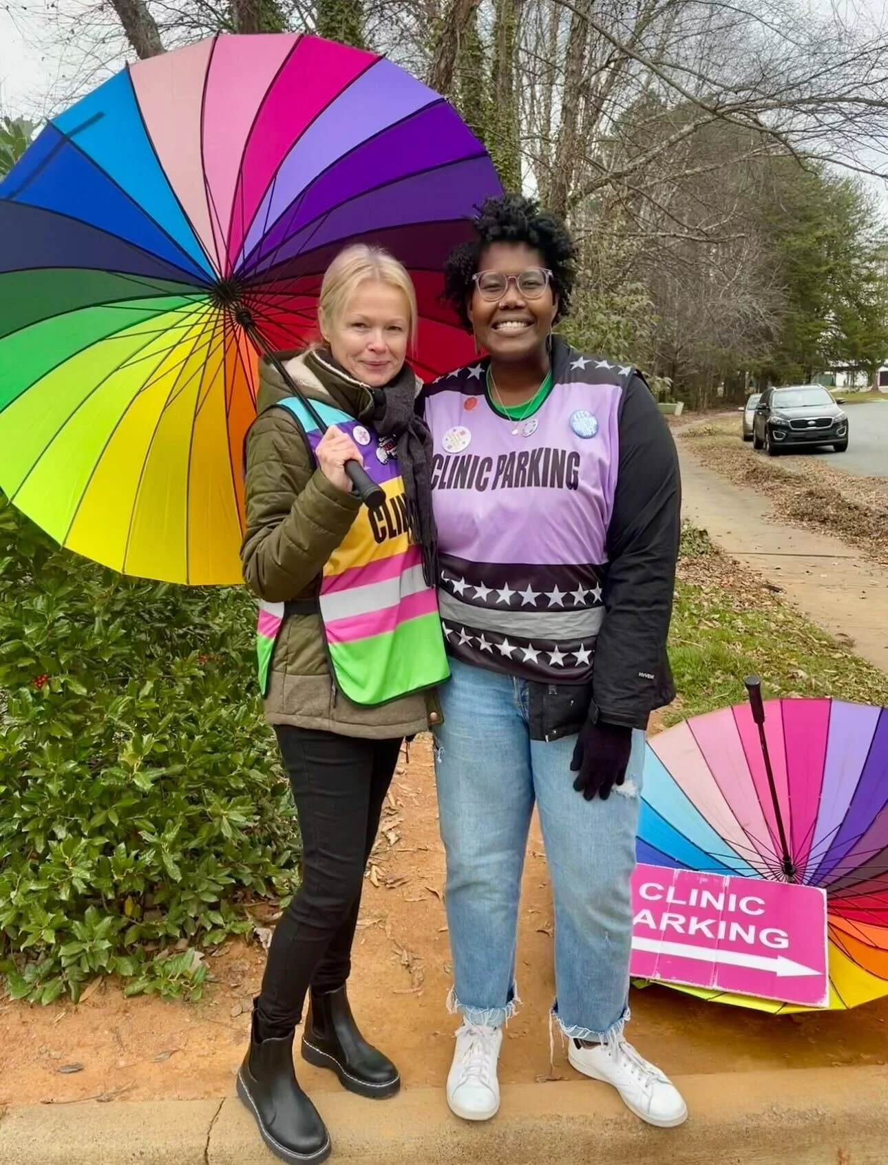 Clinic Escorts assist patients into the clinic, provide comfort and information, and serve as barriers to the harassment from the sidewalk. Clinic Escorts do not engage with anti-choice protestors as the focus is solely on the patients.